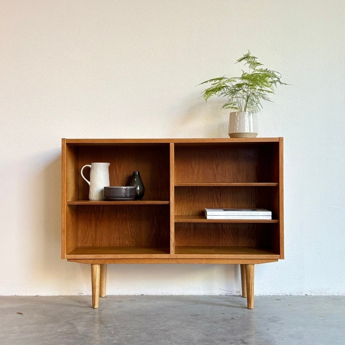 Een mid century boekenkast uit de jaren'60. Een Deens design van Hundevad en vervaardigd in eiken.