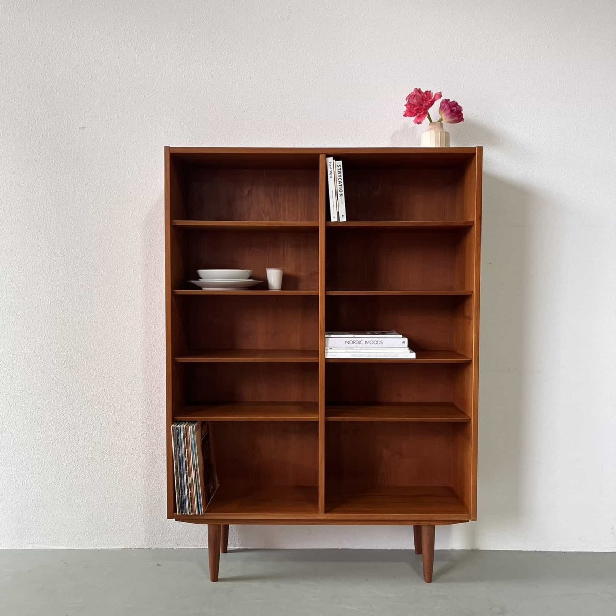 LAND: Denemarken JAAR: circa 1960ONTWERPER: Poul HundevadVERVAARDIGD IN: teakCONDITIE: hele mooie staatAFMETINGEN: 108x30.5x153NO: J6.19VERDERE INFO: Planken zijn naar eigen keus in te delen in hoogte.