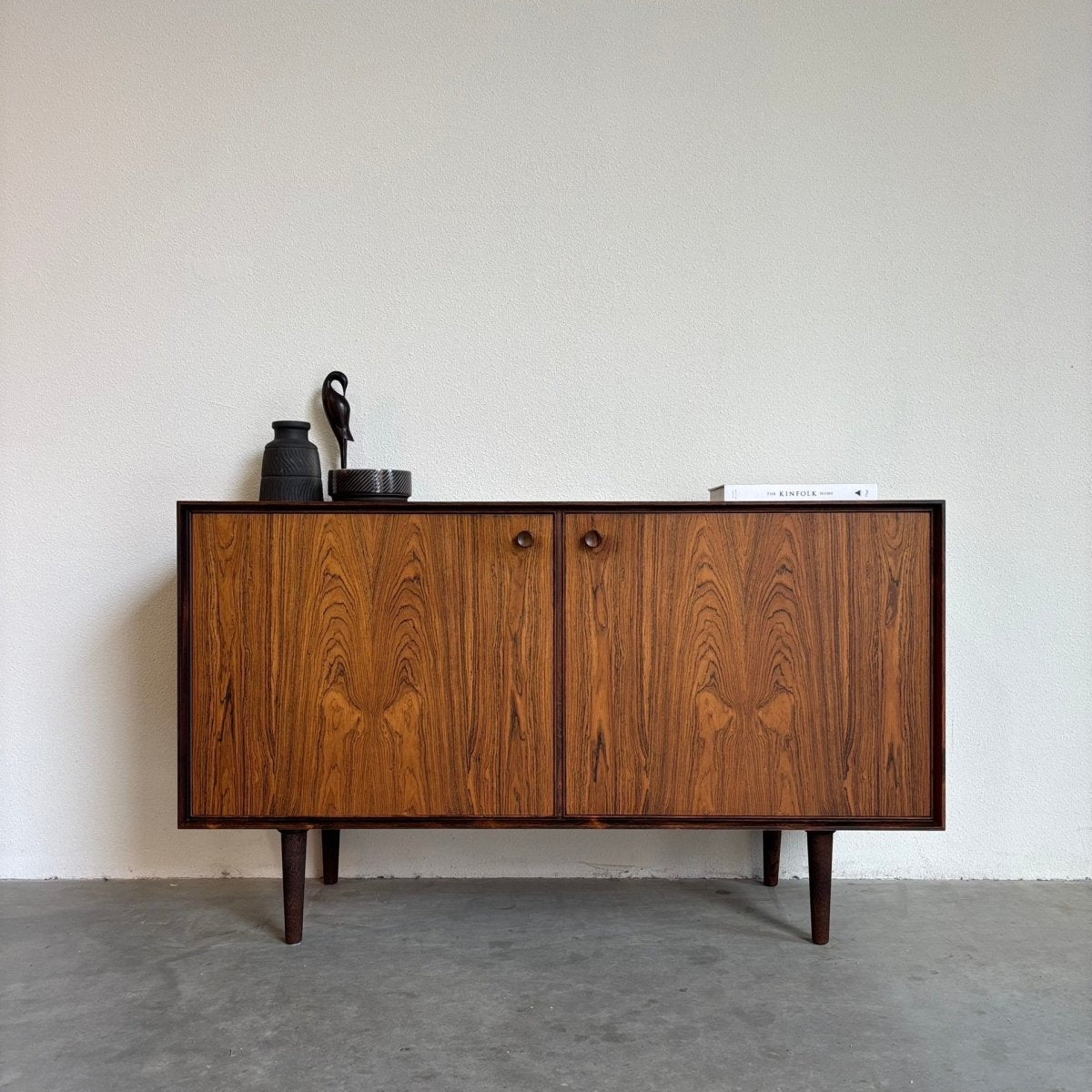 Mid Century sideboard uit de jaren ‘60. Afkomstig uit Denemarken en vervaardigd in palissander. In prachtige staat.Afmetingen: 134x44x79.5cm met aan de binnenkant 2 ruimtes van 64x38x54cm. Plank is te verstellen.
