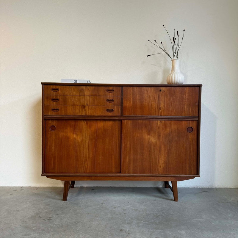 Highboard schuifdeuren en 3 lades teak