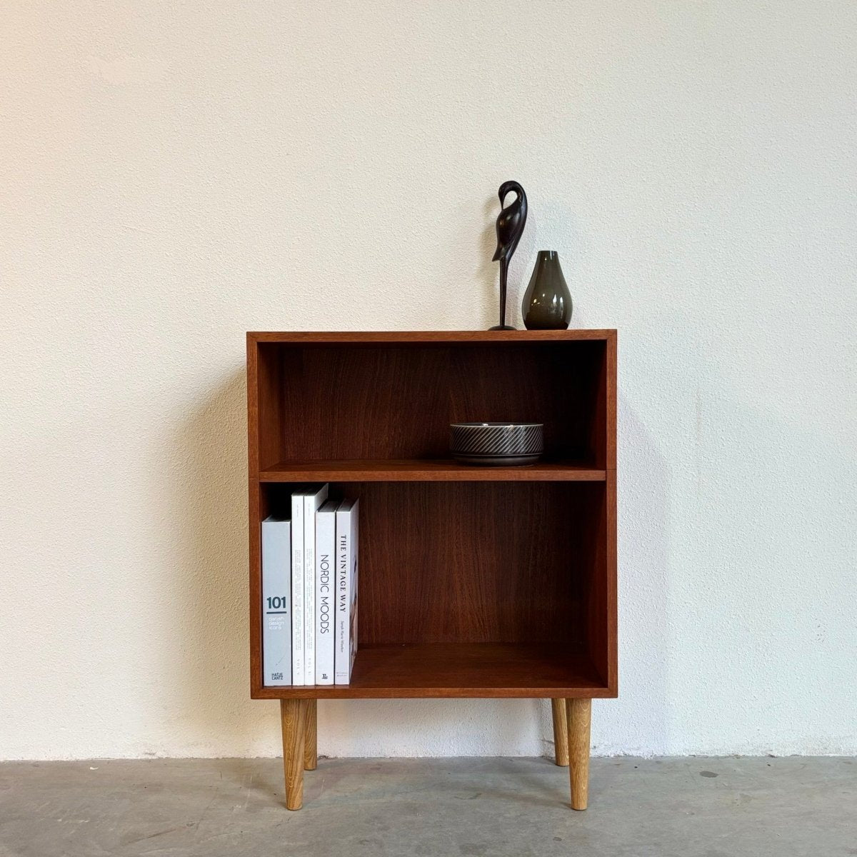 Vintage klein laag boekenkastje teak