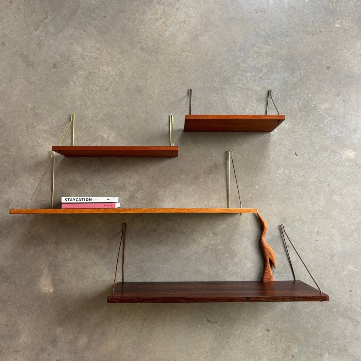 Vintage wandplank variatie teak - eiken - palissander