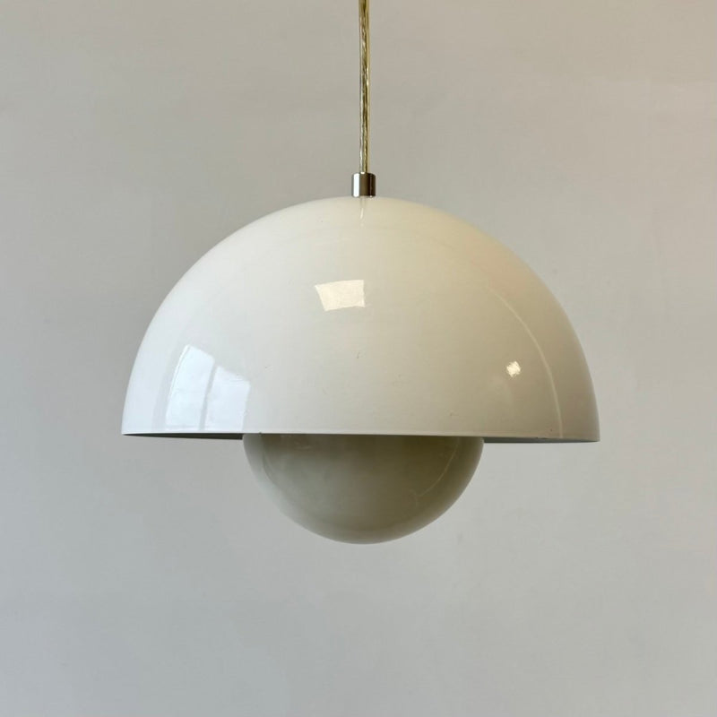Vintage Deense hanglamp ontworpen door Verner Panton. De lamp heeft de naam Flowerpot gekregen. De lamp is in goede staat op een kleine lak beschadiging bovenop bij het naam plaatje. Zie foto’s