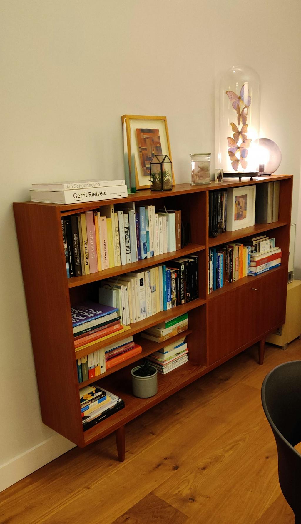 mooie mid-century meubels, met respect gerestaureerd waar nodig. Het door ons opgehaalde ladekastje had nog wat werk nodig: lijmresten verwijderen in de lades. Hiervoor waren tips wel handig geweest.